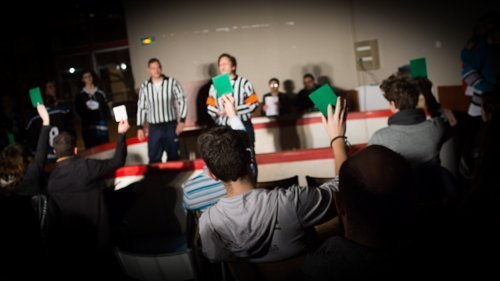 Quand les Juniors d’Impronet (Les Farfadets) rencontrent les Adultes débutants (Les Illuminés), cela donne un match plein d’énergie et de folie.